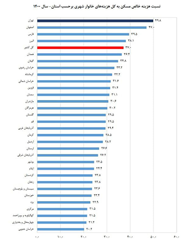 نسبت هزینه خالص مسکن به هزینههای خانوارهای شهری کل کشور در سال ۱۴۰۰ برابر ۳۷درصد بوده است.